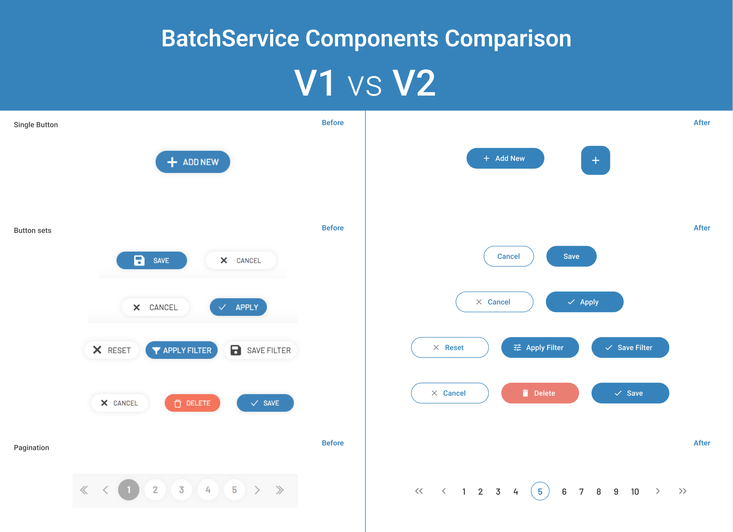I created the BatchService Design System in Figma, documented in Zeroheight, evolving it over three versions: